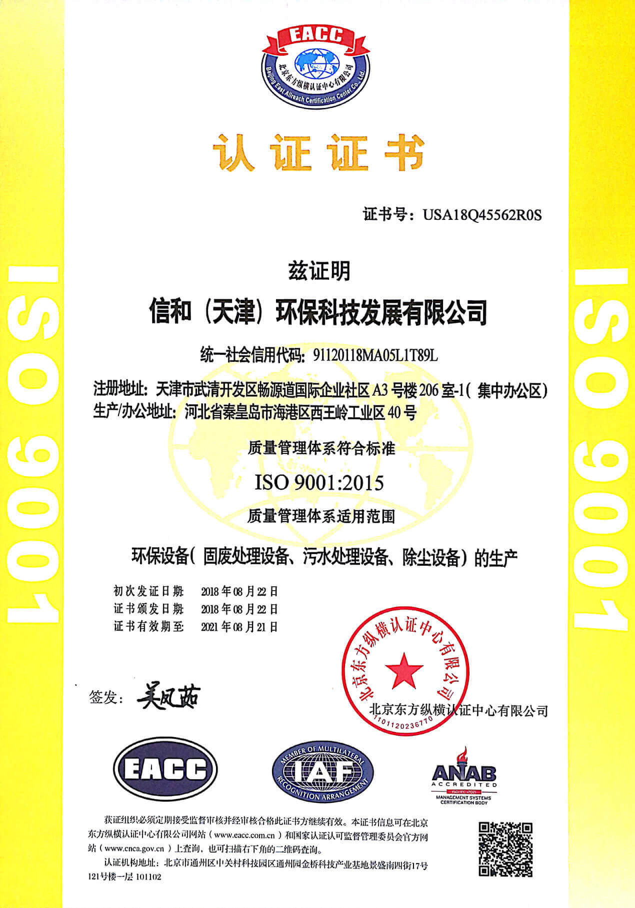 信和(天津)環保科技發展有限公司是一家專業從事環保設備研發的生產型企業,坐落于天津市武清開發區,注冊資金2000萬元,擁有≤中華人民共和國進出口企業資格證≥和≤安全生產許可證≥。公司為《中國環保產業協會會員單位》《中國城市環境衛生協會會員單位》《中國節能協會會員單位》。企業現有員工168人,其中高級職稱技術人員65名、1個技術研發中心和4個生產車間,擁有國際先進的板材加工中心、激光切割機、數控沖剪機、等離子切割機等下料成型設備。